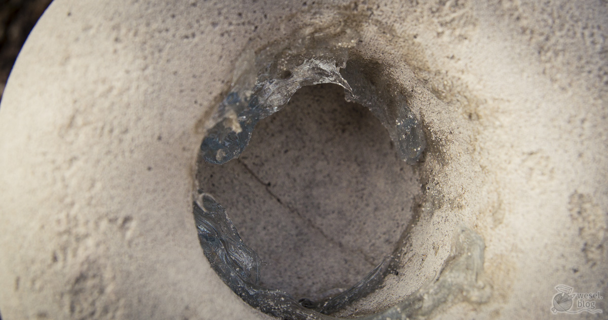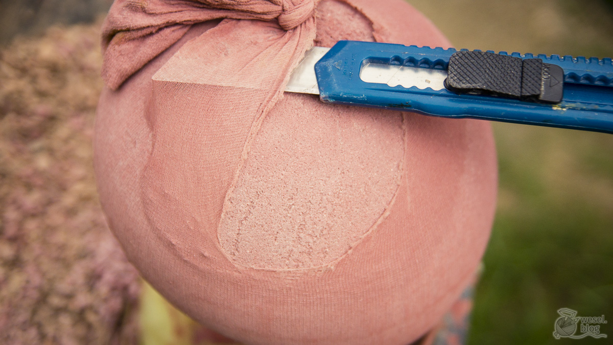 hmmmmm evtl. einmal versuchen mit Schmiergelpapier ran zu gehen. Evtl. war der Beton etwas zu flüssig, dass du die Strumpfhose zu sehr mit einbetoniert hast.