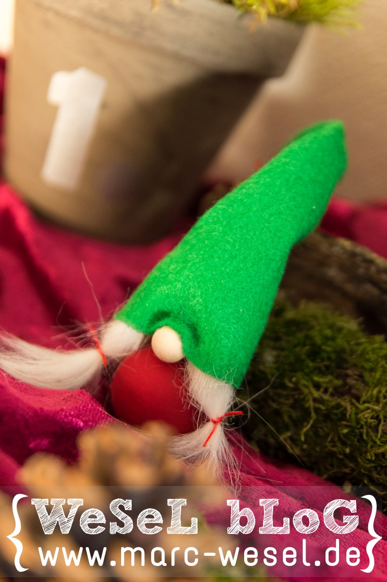 Die Weihnachtswichtel zieren im Moment unseren Adventskranz sind aber ganz generell ideal als Winter- und Weihnachtsdeko geeignet.